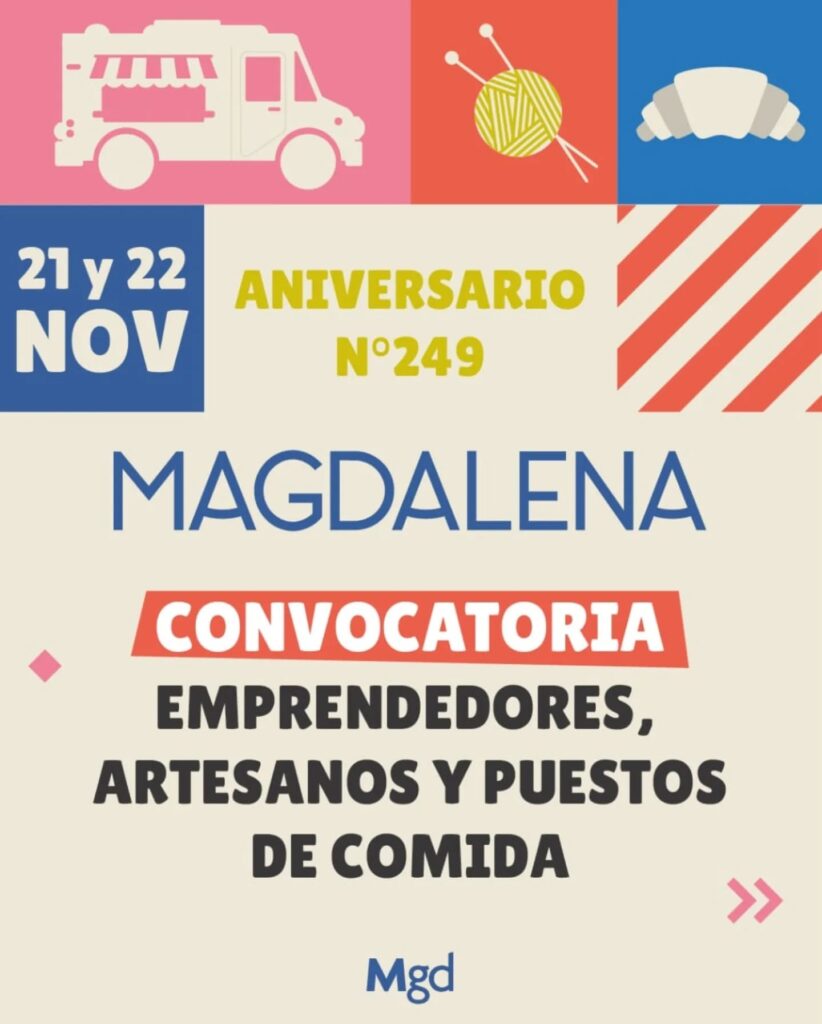 Falta cada vez menos para un nuevo aniversario de Magdalena y vos tenes que ser parte…por eso, si sos artesano, emprendedor o tenes un food truck, este posteo es para vos.